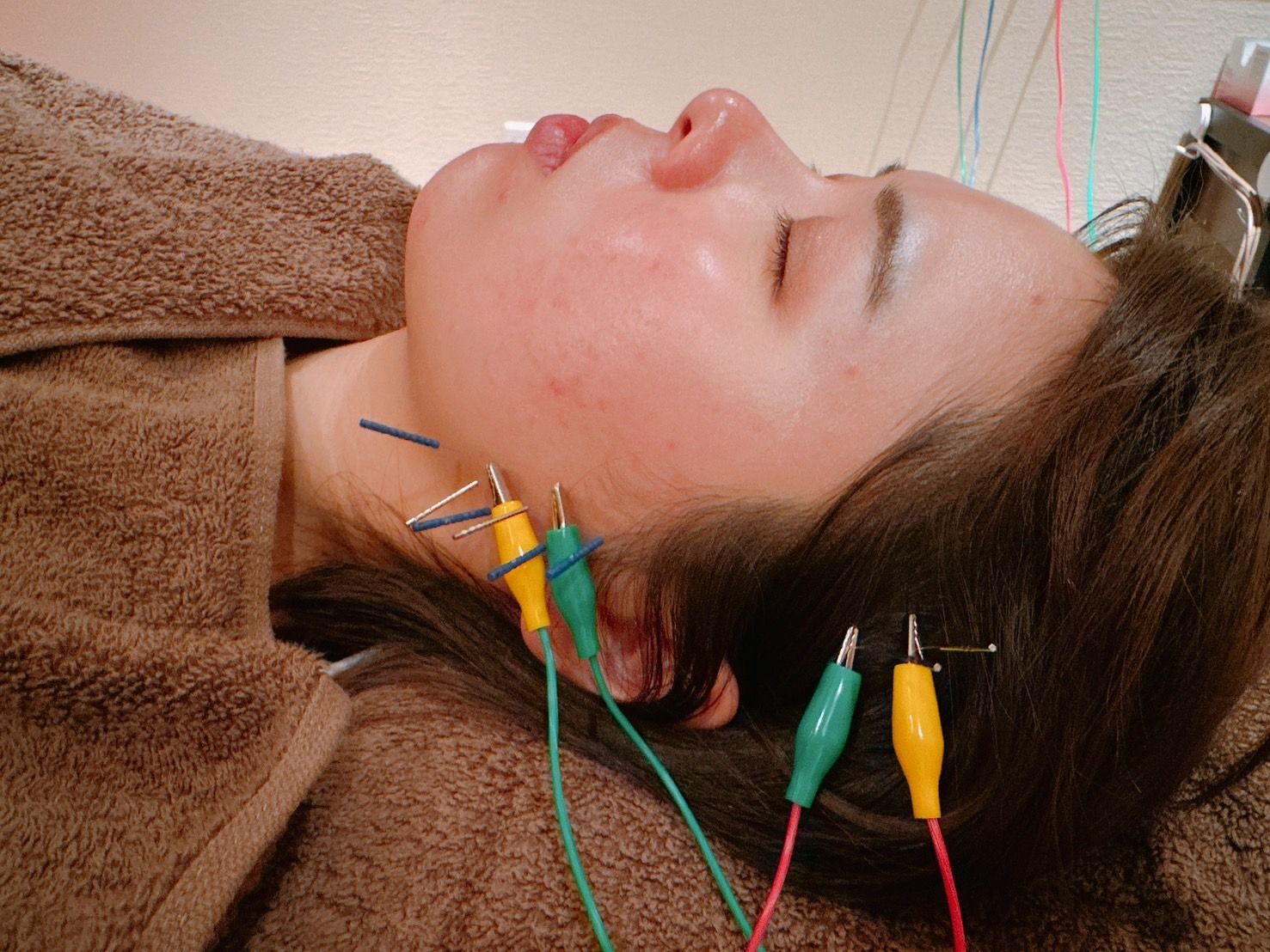自律神経を整え顔面部・顎周りに鍼と電気を流した。