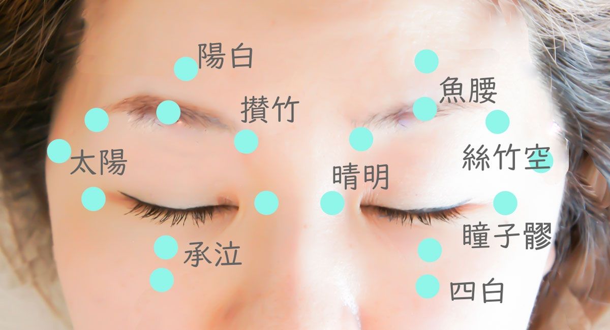 ①目の周りの筋肉、ツボに鍼を刺し、目への血液循環を促す